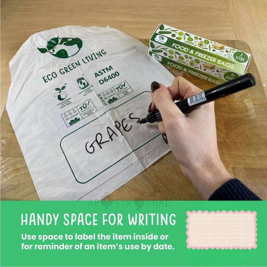 Certified Compostable Food & Freezer Bags 35 Bags - 2L or 4L