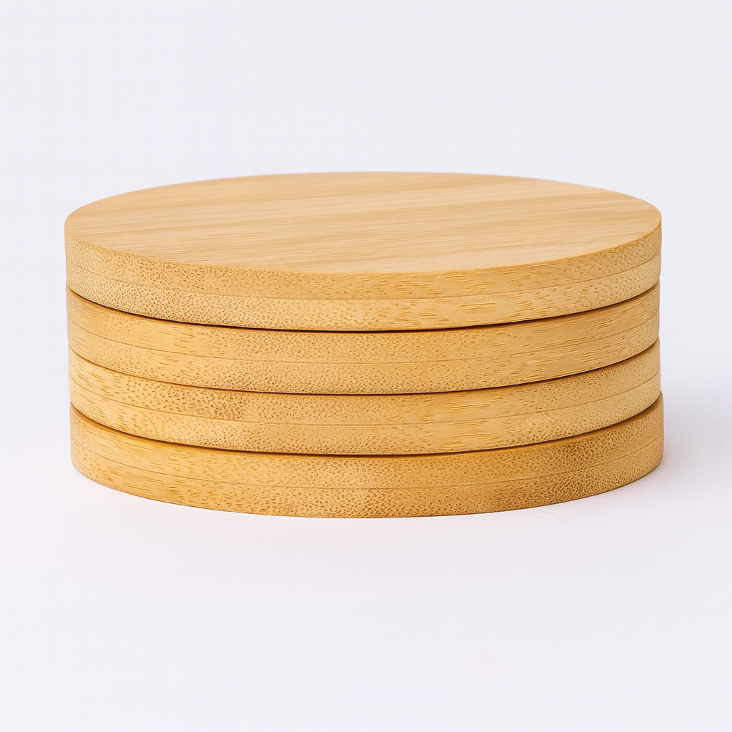 Set of 4 Sustainable Bamboo Coasters - Round Shaped