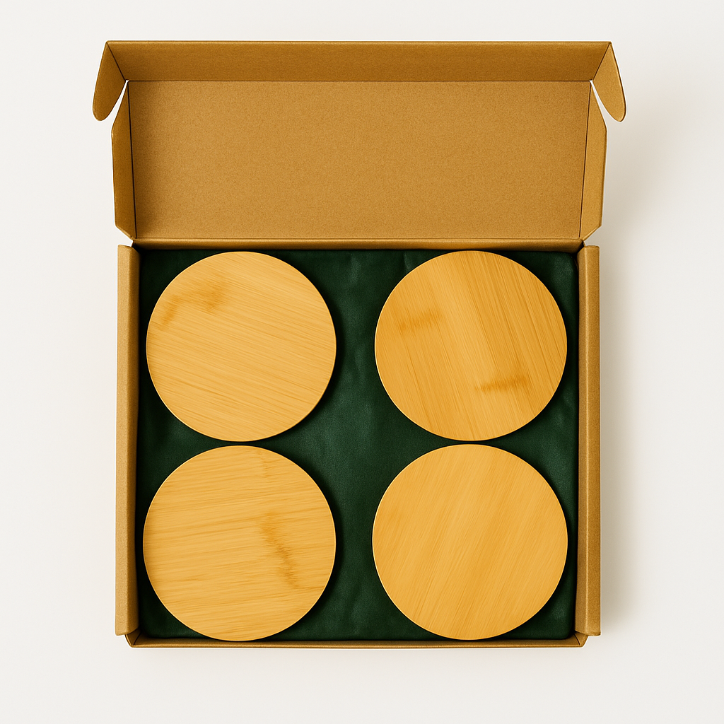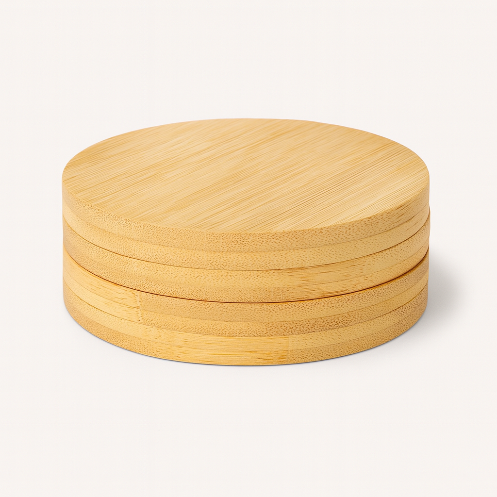 This set of four 🌿 FSC-certified bamboo coasters offers an eco-friendly way to protect your tables from water marks.