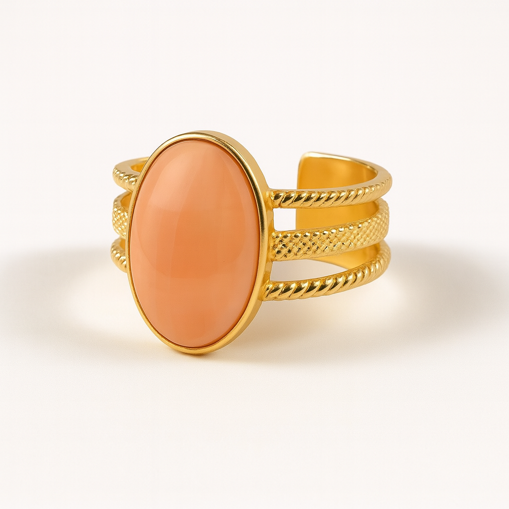 Radiant orange moonstone captures light with an ethereal warmth, making this adjustable three-band ring an effortlessly sophisticated choice for daily wear.