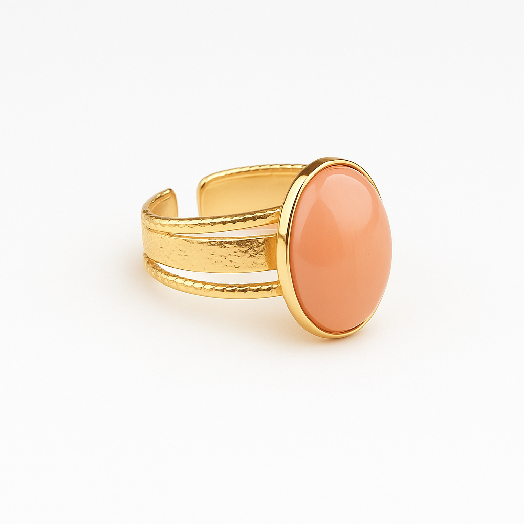 Orange Moonstone Ring 24K Gold Plated Adjustable 3 Bands - Artisan Handmade