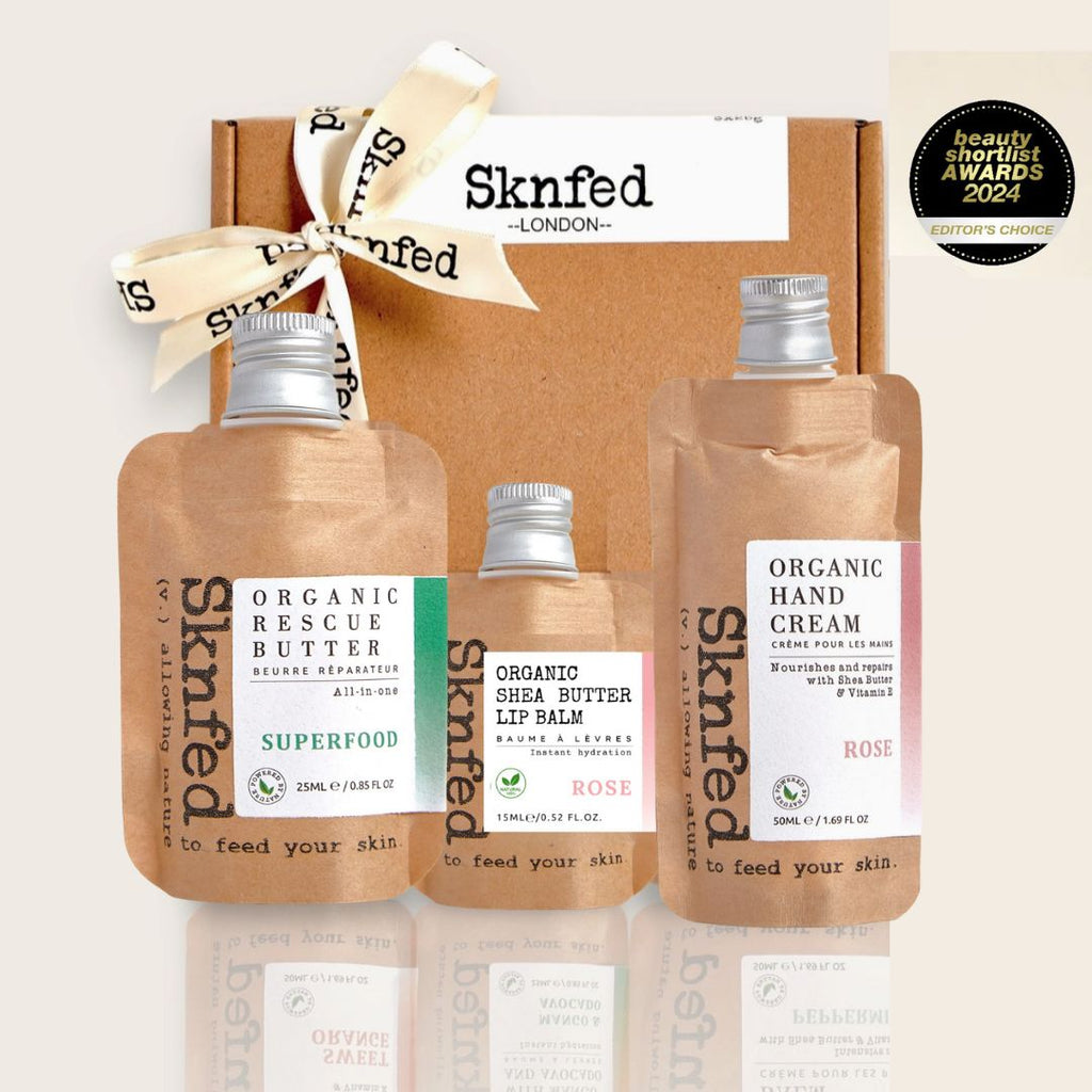 Organic Pamper Gift Set - Trio Foot Balm or Rescue Butter, Hand Cream & Lip Balm