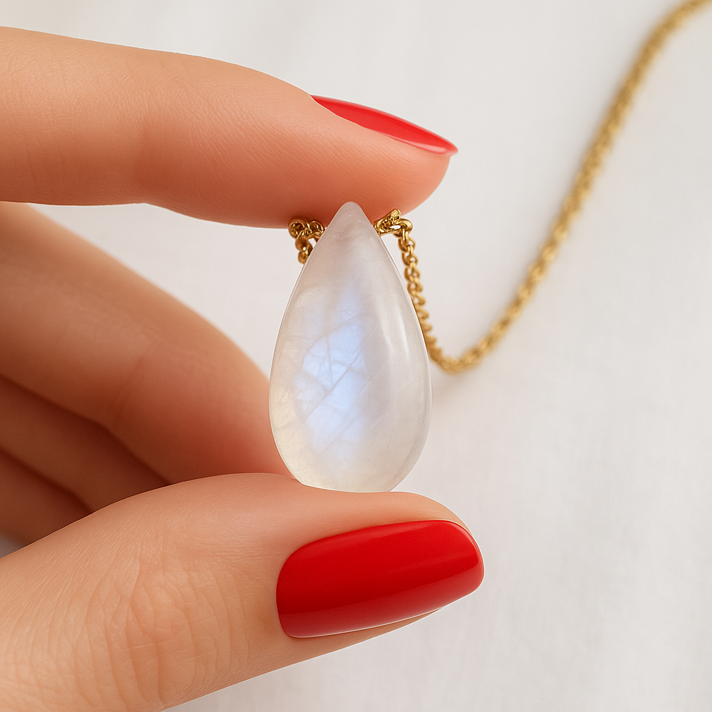 Unique Moonstone Necklace Gold Chain Teardrop Gemstone - Artisan Handmade