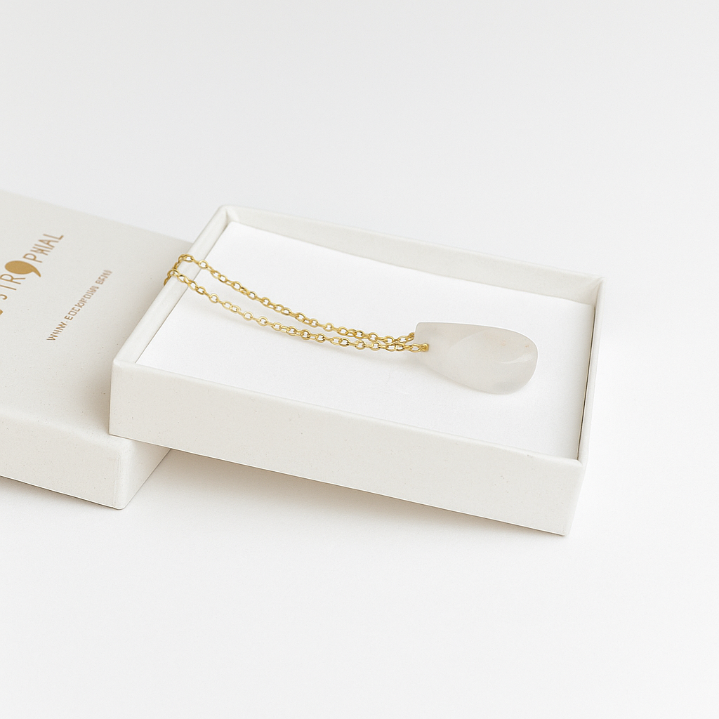 Featuring a luminous polished teardrop gemstone gracefully suspended on a refined gold chain, this one-of-a-kind piece showcases the artistry of our curated skilled makers.