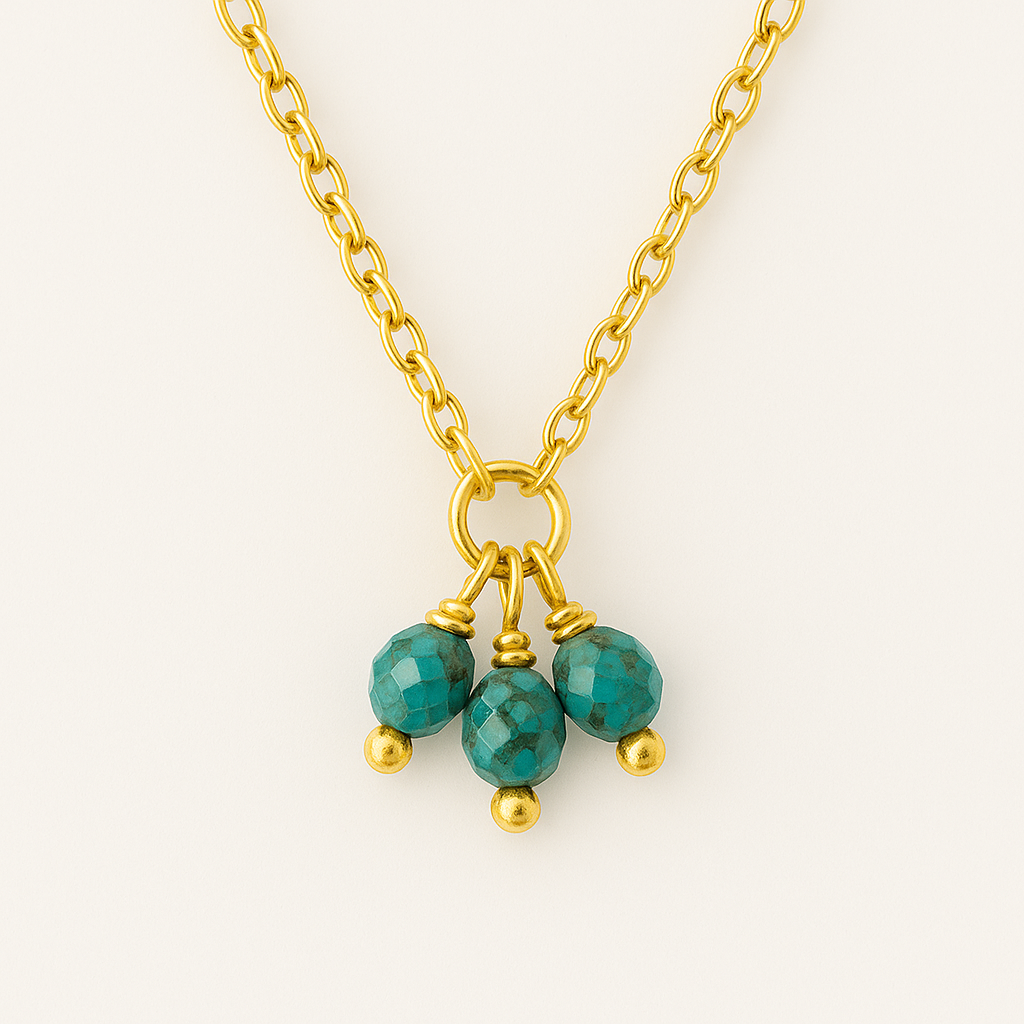 Trio Gemstones Layering Necklace Gold Chain Handmade - Turquoise or Black Spinel