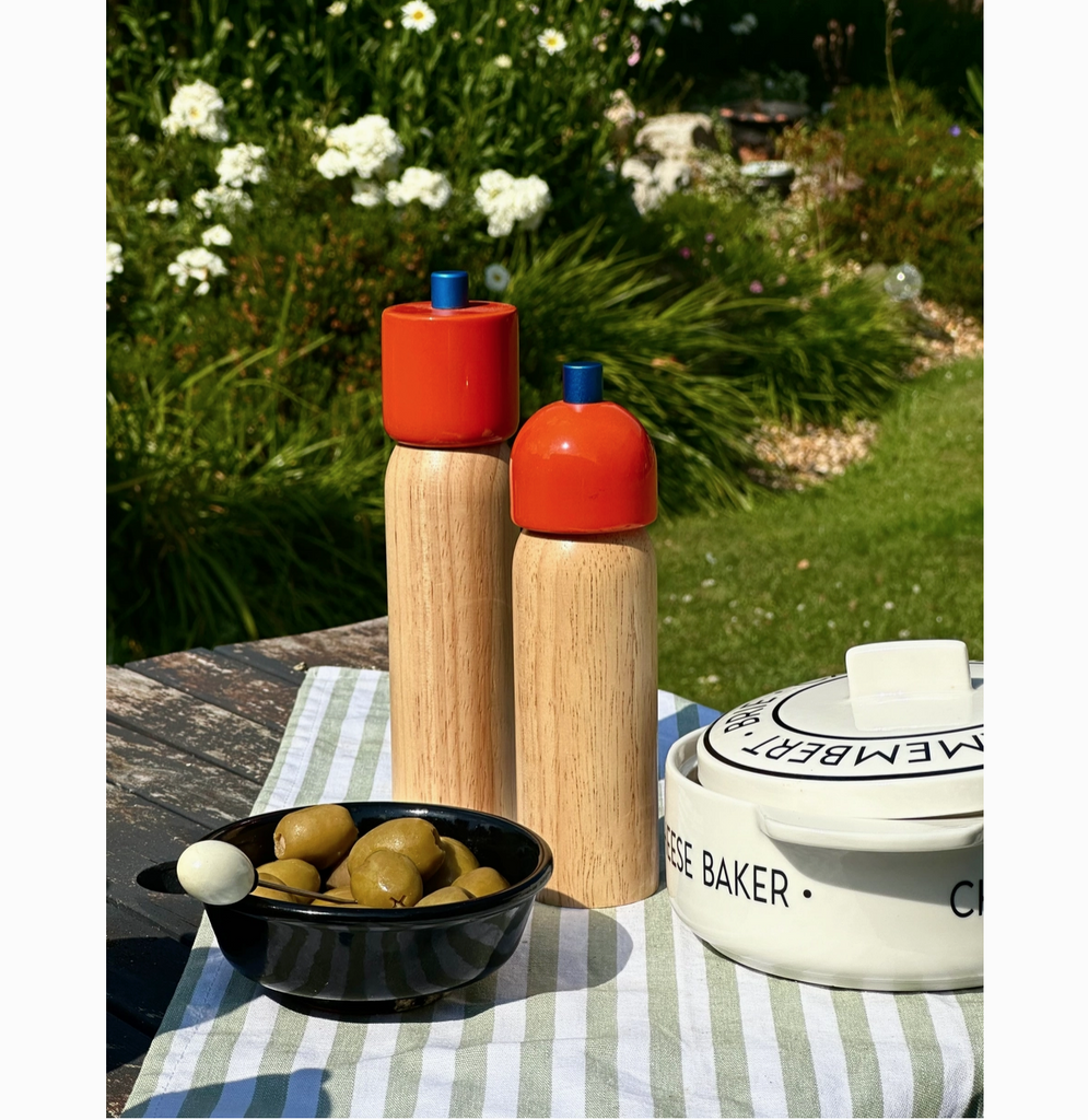 Enhance your dining table with our Salt & Pepper Grinders, featuring a striking Orange & Blue design (exist also in Green and Gold).
