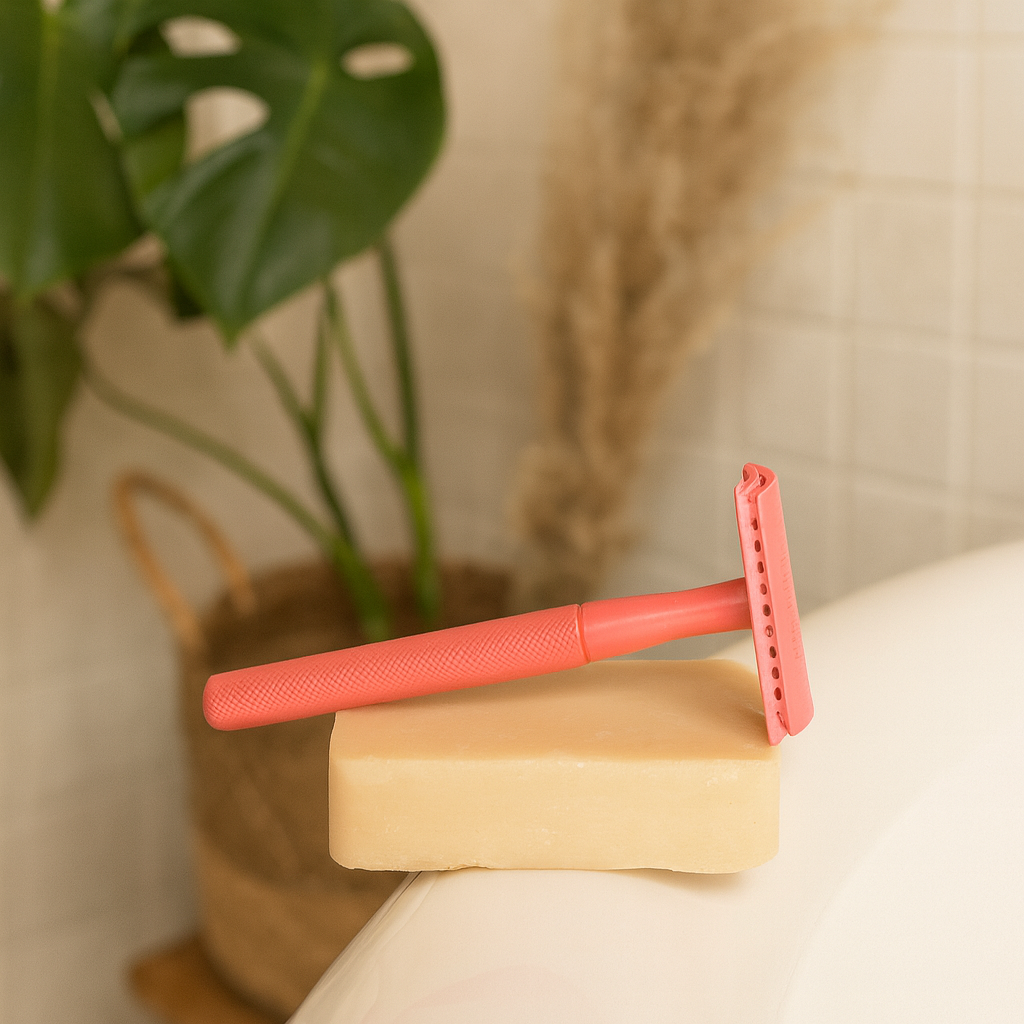 Our hot pink precision-engineered eco safety razor offers a smooth and comfortable zero-waste shave.