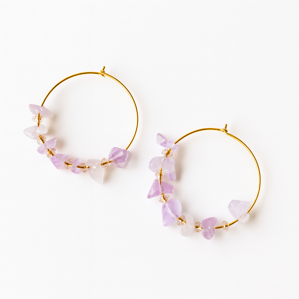 Amethyst Creoles Hoop Earrings Gold Gemstone Chip - Artisan Handmade Prisca