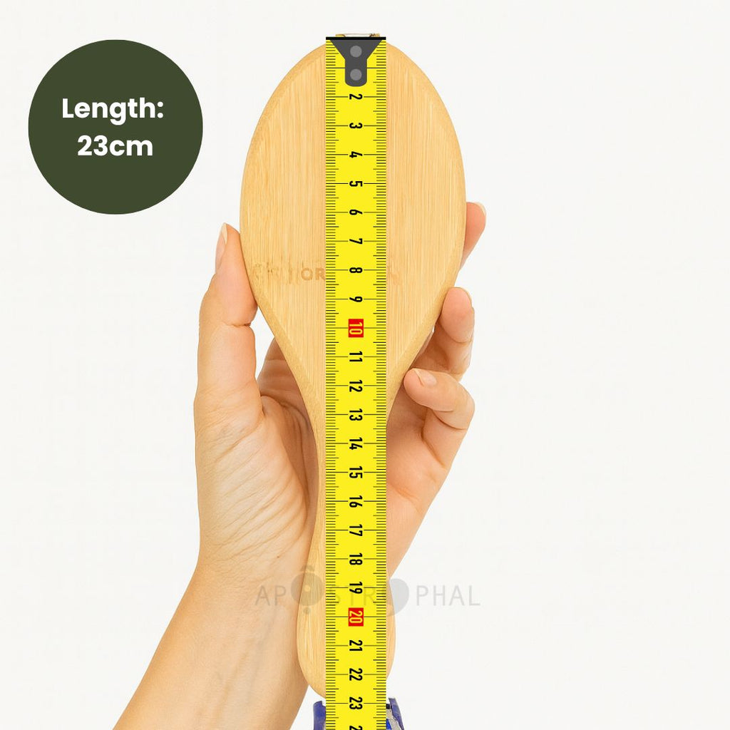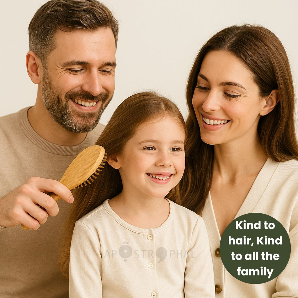 🎍 Crafted from fast-growing sustainable bamboo, the handle is ergonomically shaped for a comfortable grip and the soft wooden bristles are gentle on the scalp.
