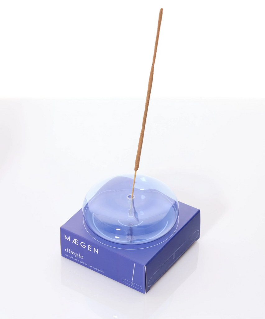 Crafted with a blend of simplicity and elegance, this handblown glass incense stick holder in a calming blue hue can securely hold up to three incense sticks.