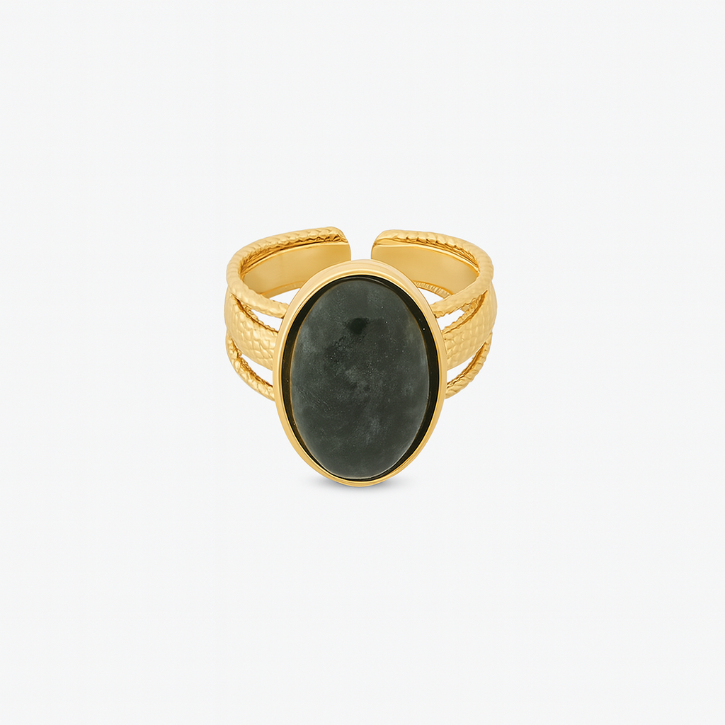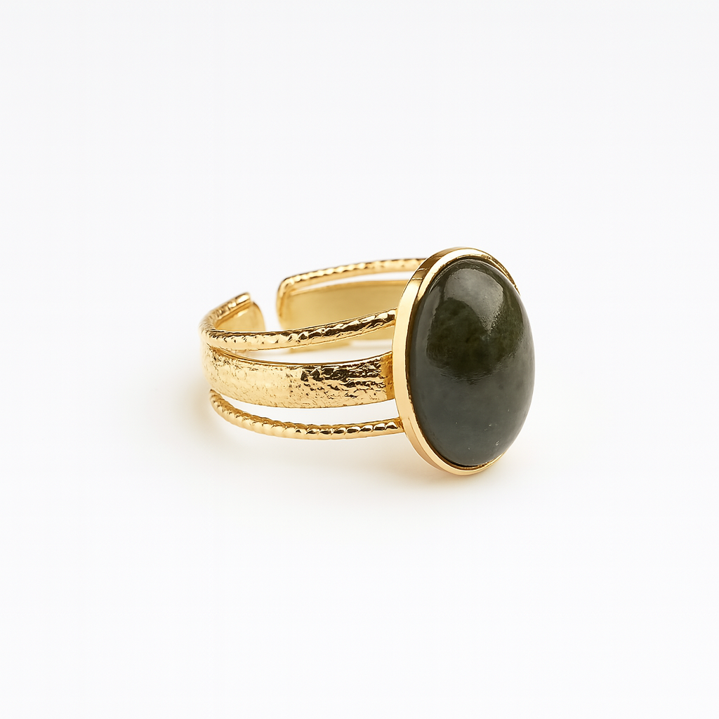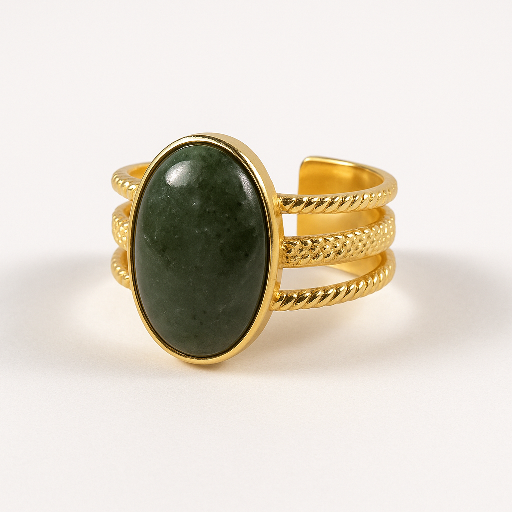 3 Bands Adjustable Ring 24K Gold Plated Oval Gemstone - Artisan Handmade