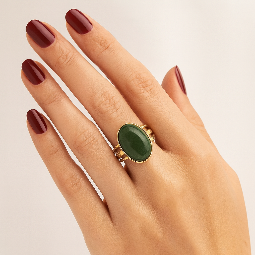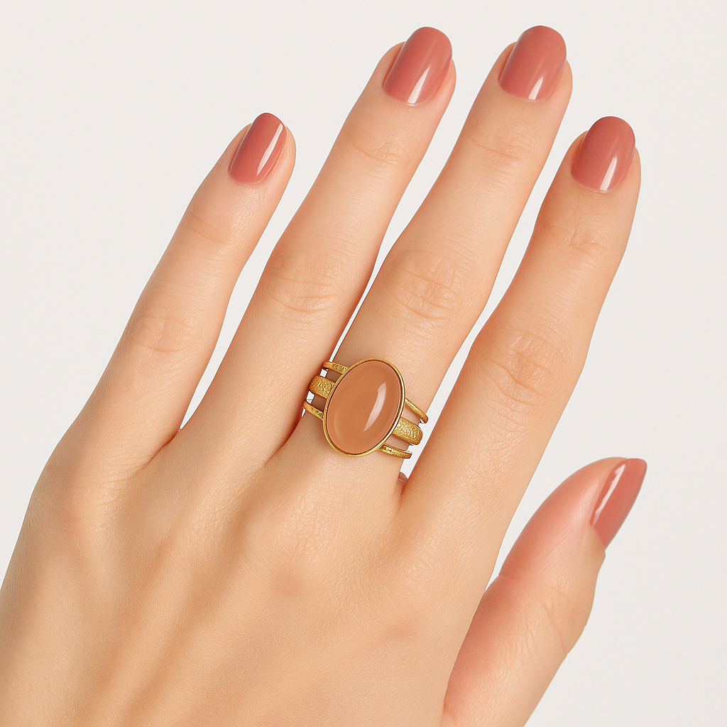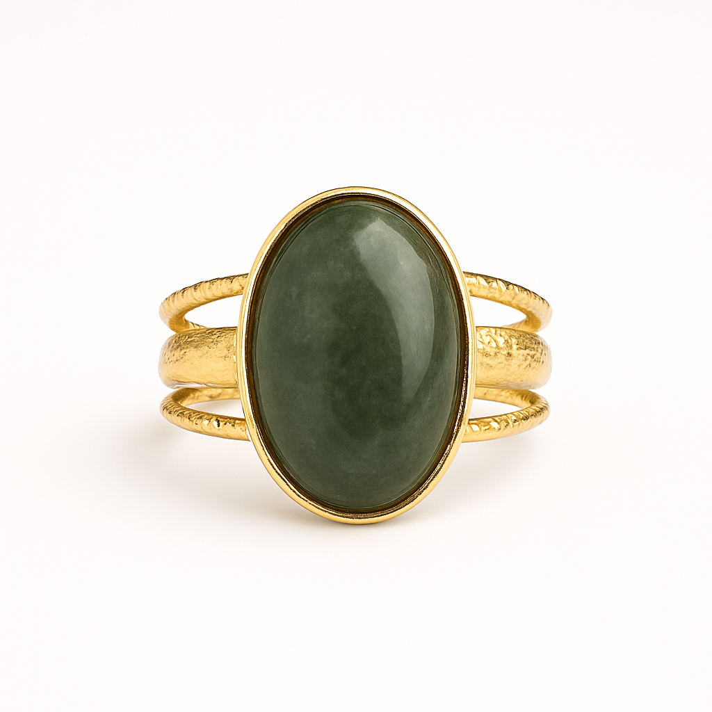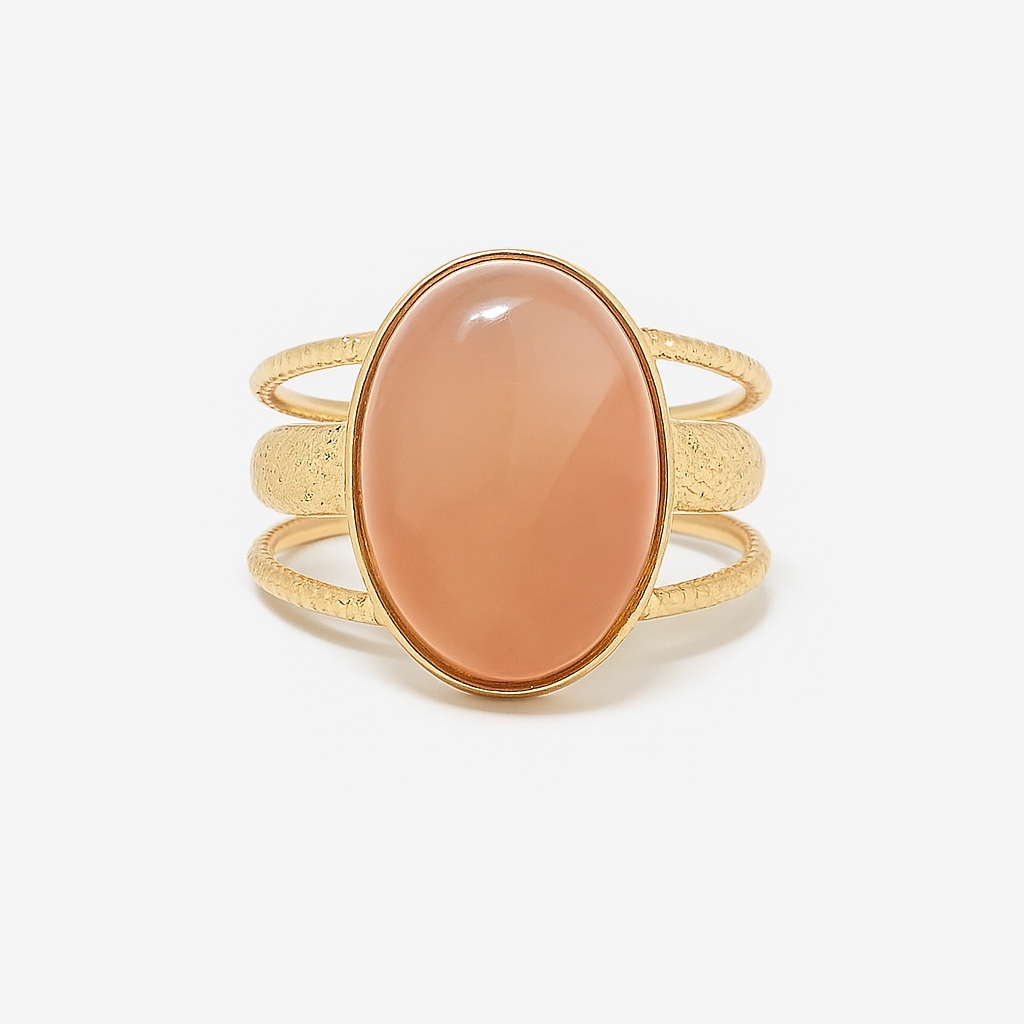 3 Bands Adjustable Ring 24K Gold Plated Oval Gemstone - Artisan Handmade